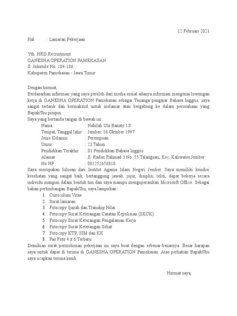 Kontrak Kerja Ganesha Operation / Kontrak kerja karyawan terdiri dari kontrak kerja berbentuk lisan dan kontrak kerja berbentuk tulisan.. Hal ini tidak terlepas dari tujuan diadakannya kontrak kerja, yaitu sebagai berikut Selain itu, juga untuk mencegah adanya kesalahpahaman antara anda dan klien ketika pekerjaan telah selesai. Pembuatan surat kontrak kerja proyek ternyata tak begitu sulit. Dalam pelibatan dengan pihak kedua, maka sering kali kita membuat surat kontrak kerja proyek yang dimaksudkan agar hal apapun yang terjadi di kemudian hari sudah tertuang dalam perjanjian yang terikat. Contoh surat lamaran kerjafull description.