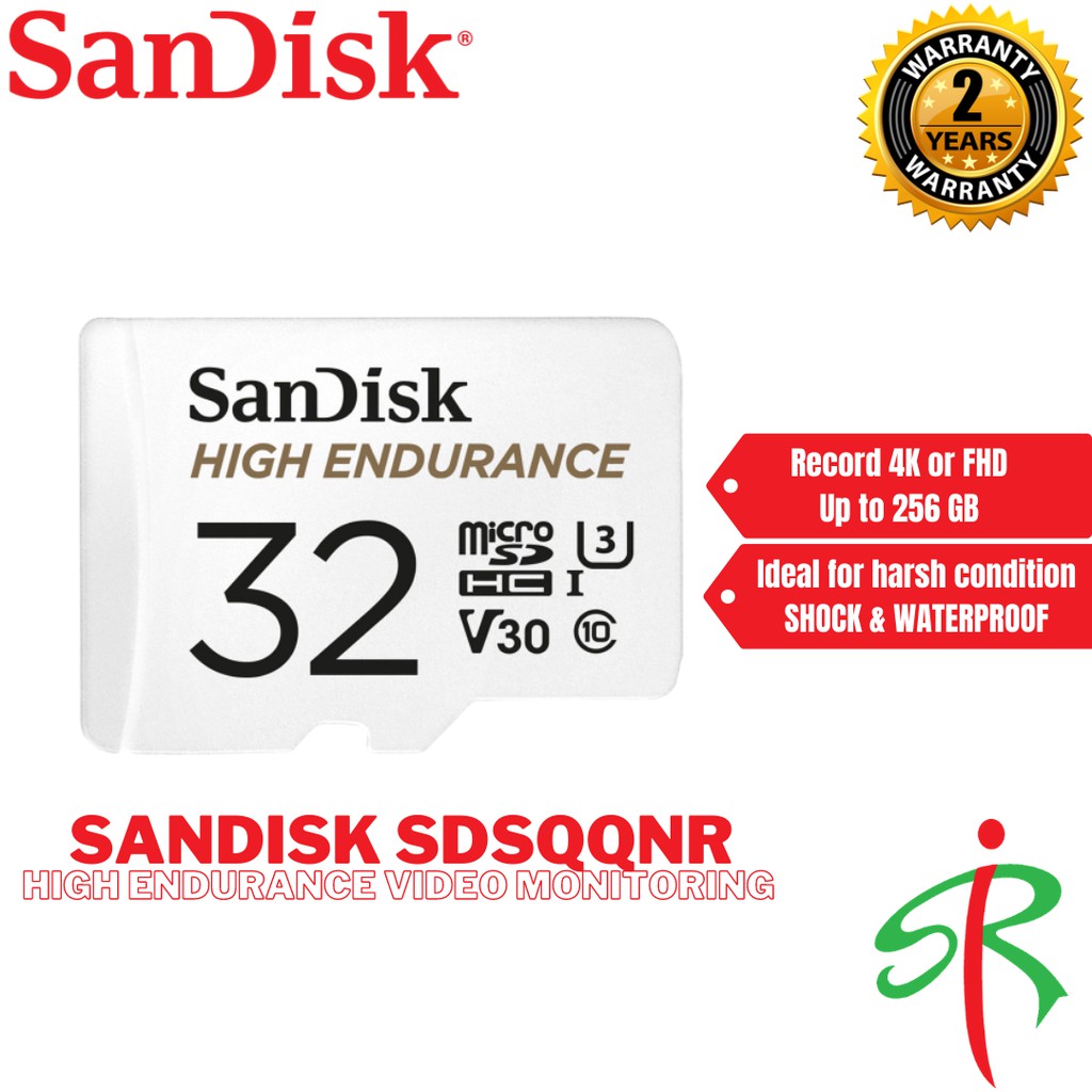 64gb** sandisk® high endurance video monitoring card designed for dash cams and home security cameras highlights the right choice for external storage • ideal for dashboard cameras and home video monitoring built to stand. Specifically developed for high endurance applications, the sandisk high endurance video monitoring card can endure up to 10,000 hours of writing full hd video. Those looking for an endurance video monitoring sd, pretty good price as per ccc lowest this year, good to use with dash cams. For microsdxc (64gb, 128gb, 256gb) card: C10 • up to 10,000 hours of full hd video recording.