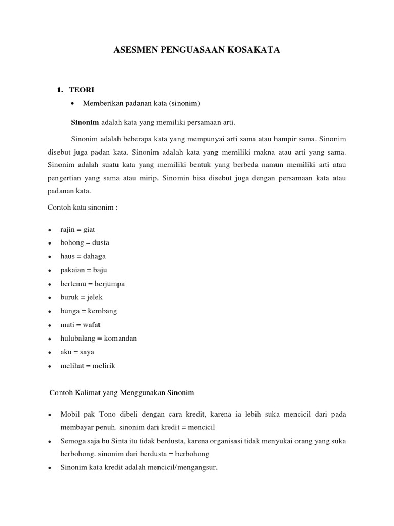 Menggunakan Sinonim from imgv2-2-f.scribdassets.com Demikianlah bahasan tentang 30 contoh sinonim dan antonim beserta kalimatnya, semoga bermanfaat dan jangan lupa berikan komentar anda serta kunjungi terus blog. Sinomin bisa disebut juga dengan persamaan kata atau padanan kata. Sinonim sinonim adalah suatu kata yang memiliki bentuk yang berbeda namun memiliki arti atau pengertian yang sama atau mirip. Sinonim adalah dua kata atau lebih yang memiliki persamaan makna kata. Antonim adalah sebuah kata memiliki arti berlawanan. Malas >< rajin pria >< wanita tarik >< dorong 2. Berikut bahasan kita mengenai contoh kalimat antonim, sinonim dan hiponim dalam bahasa untuk menguatkan tubuh yang lemah, selain rajin berolahraga, dapat juga dengan mengkonsumsi demikianlah ulasan mengenai contoh kalimat antonim, sinonim dan hiponim dalam bahasa. Baik antonim maupun sinonim sering diaplikasikan dalam berbagai kalimat.